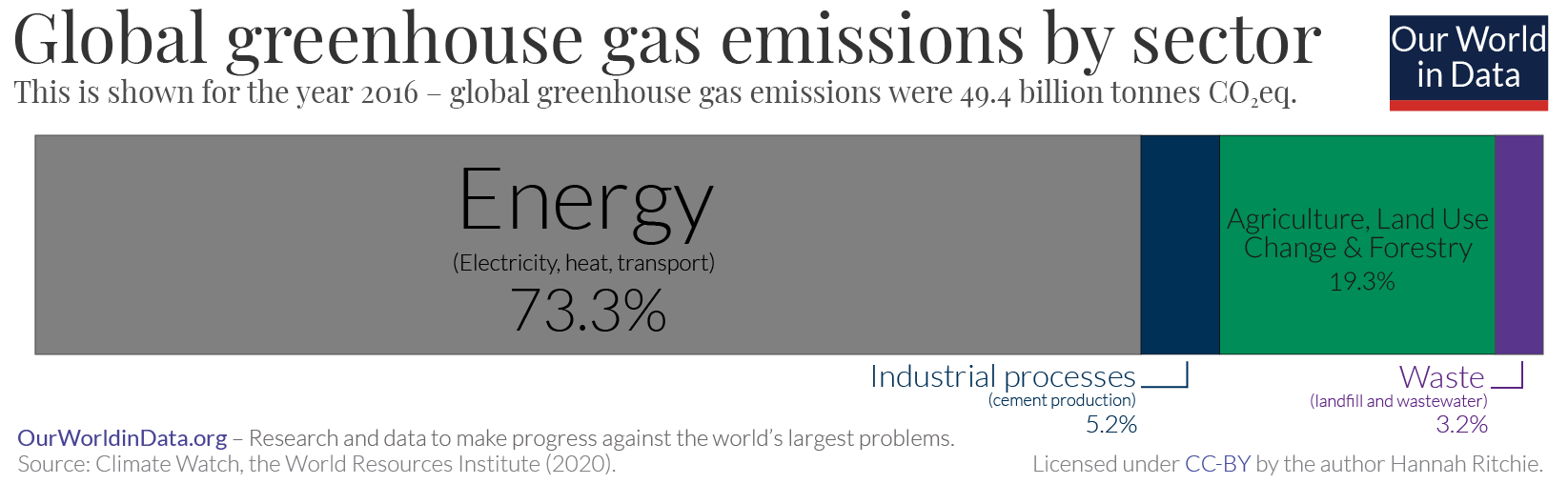 Three-quarters of global greenhouse gas emissions come from the burning of fossil fuels for energy.10 To tackle climate change, we need to transition away from fossil fuels and decarbonize our energy systems.