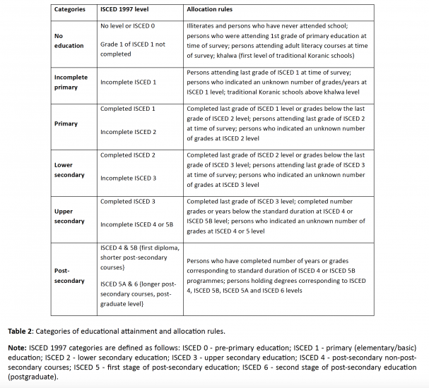 The level of highest educational attainment is categorized in a system that aims to capture the structure of populations across the different country-specific educational systems – see the footnote for details.9